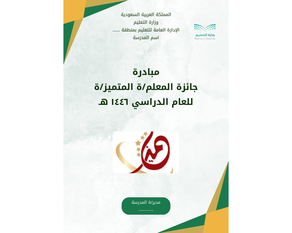 المشروع عبارة عن مبادرة مدرسية نوعية يمكن تطبيقها في مدارس البنين والبنات تسهم في التنمية المهنية للمعلمين والمعلمات وخلق بيئة تنافسية فيما بينهم بما ينعكس إيجابا على رفع المستوى التحصيلي للطلبة . الملف المرفق مكون من 13 صفحة تشمل الغلاف والفكرة وأهداف المشروع والية التنفيذ والنماذج الخاصة بالتنفيذ . الملف عبارة عن قالب قابل للطباعة وفي ذات الوقت قابل للتعديل بما يتناسب مع احتياجات المدرسة .